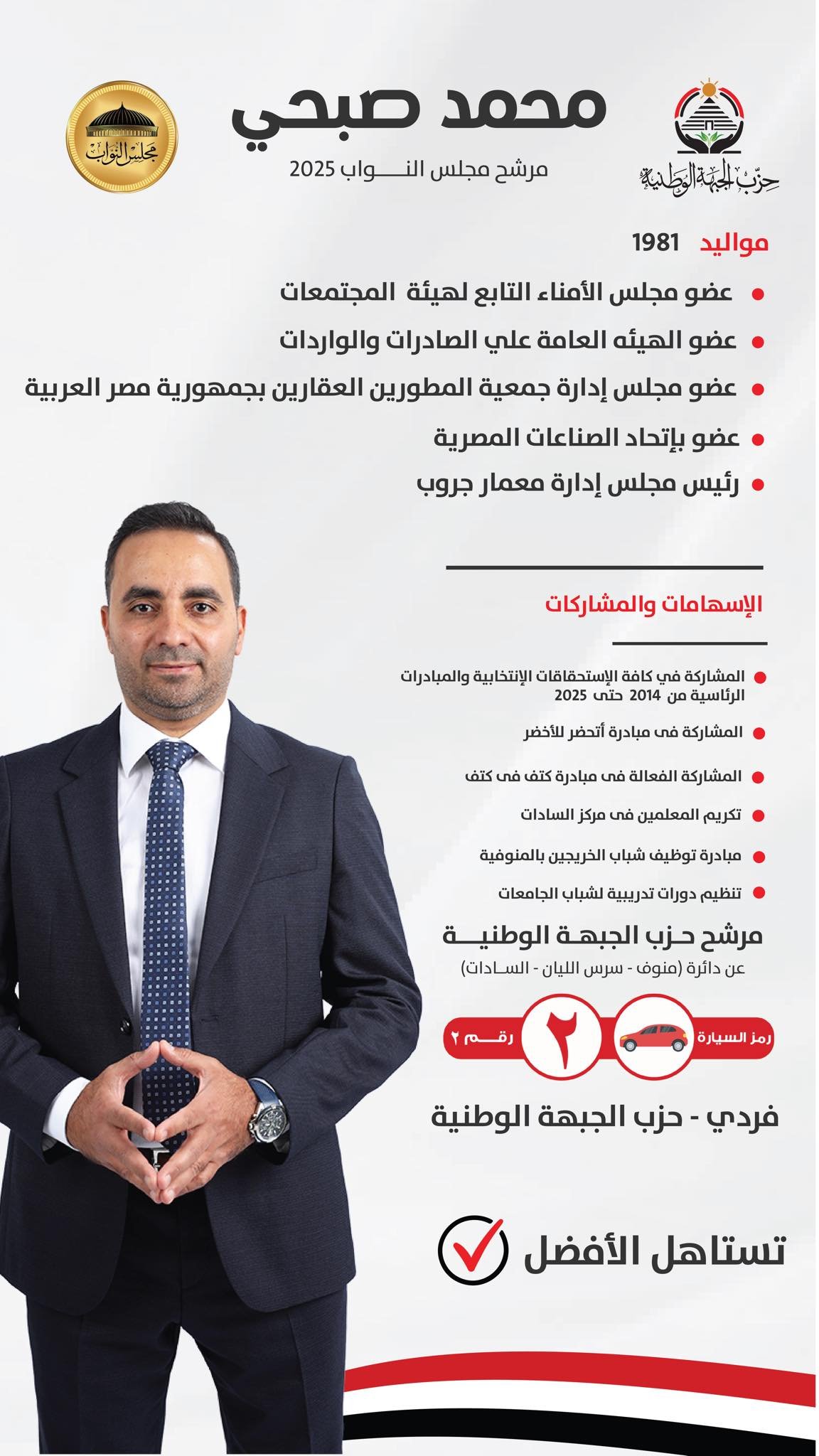 بالإضافة إلى إنجازاته الريادية، يشغل محمد صبحي منصب عضو في حزب الجبهة الوطنية، حيث يشارك بنشاط في مبادرات تعزز تمكين الشباب والإصلاح الاقتصادي والتنمية المستدامة. عمله يربط بين القيادة التجارية والخدمة العامة، مما يعزز دوره كمساهم ملتزم في مستقبل مصر.